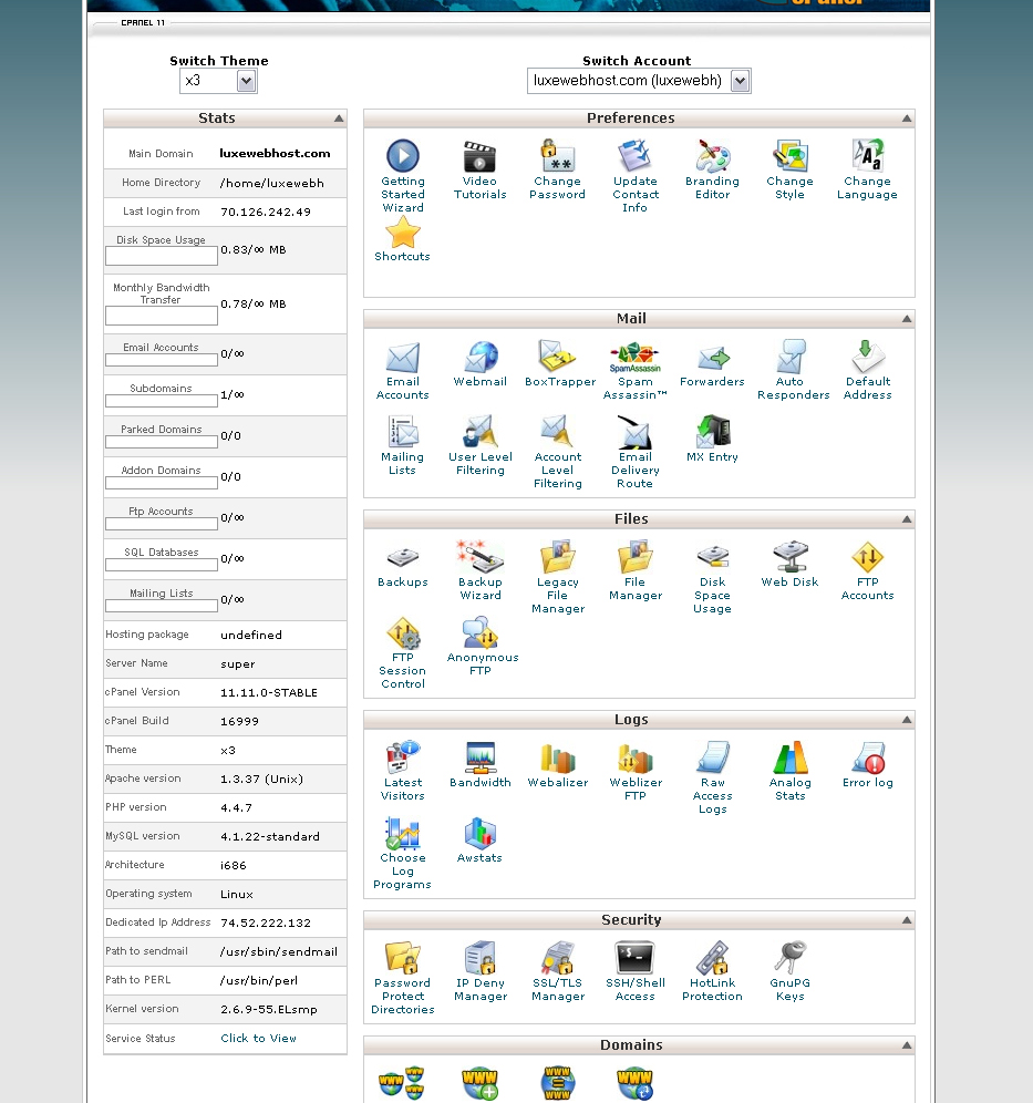 A. The control panel we use is called Cpanel. An image of the Cpanel can be